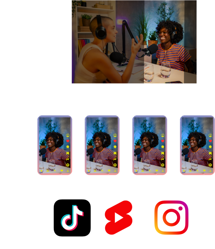 Tout en un coup de baguette magique! Convertir un marathon de 90 minutes en une série de 20 clips vidéo édités, prêts à être diffusés chaque mois sur tes réseaux sociaux préférés.